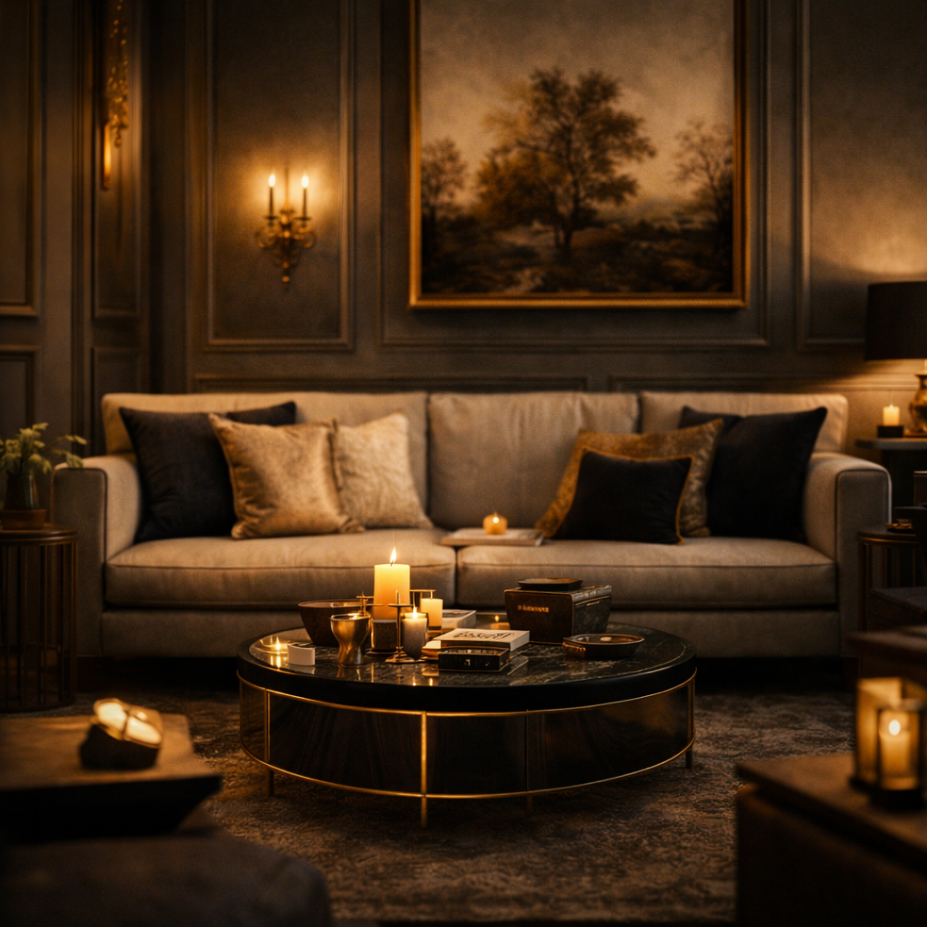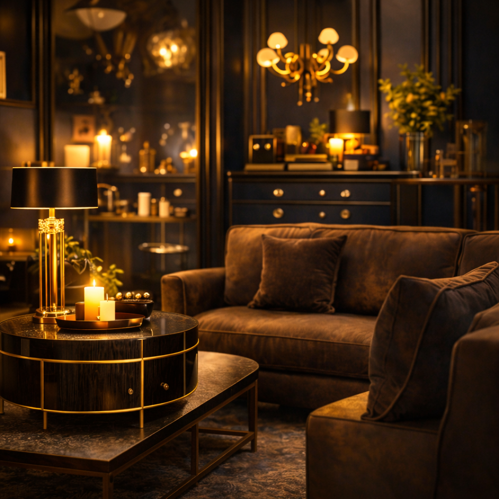 Laiton, velours, formes graphiques : sophistication signature.